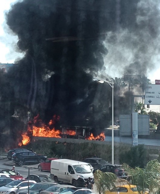 جدّ صباح اليوم الإثنين 26 ماي 2025، حريق بحافلة تابعة لشركة نقل تونس على مستوى المركز العمراني الشمالي.