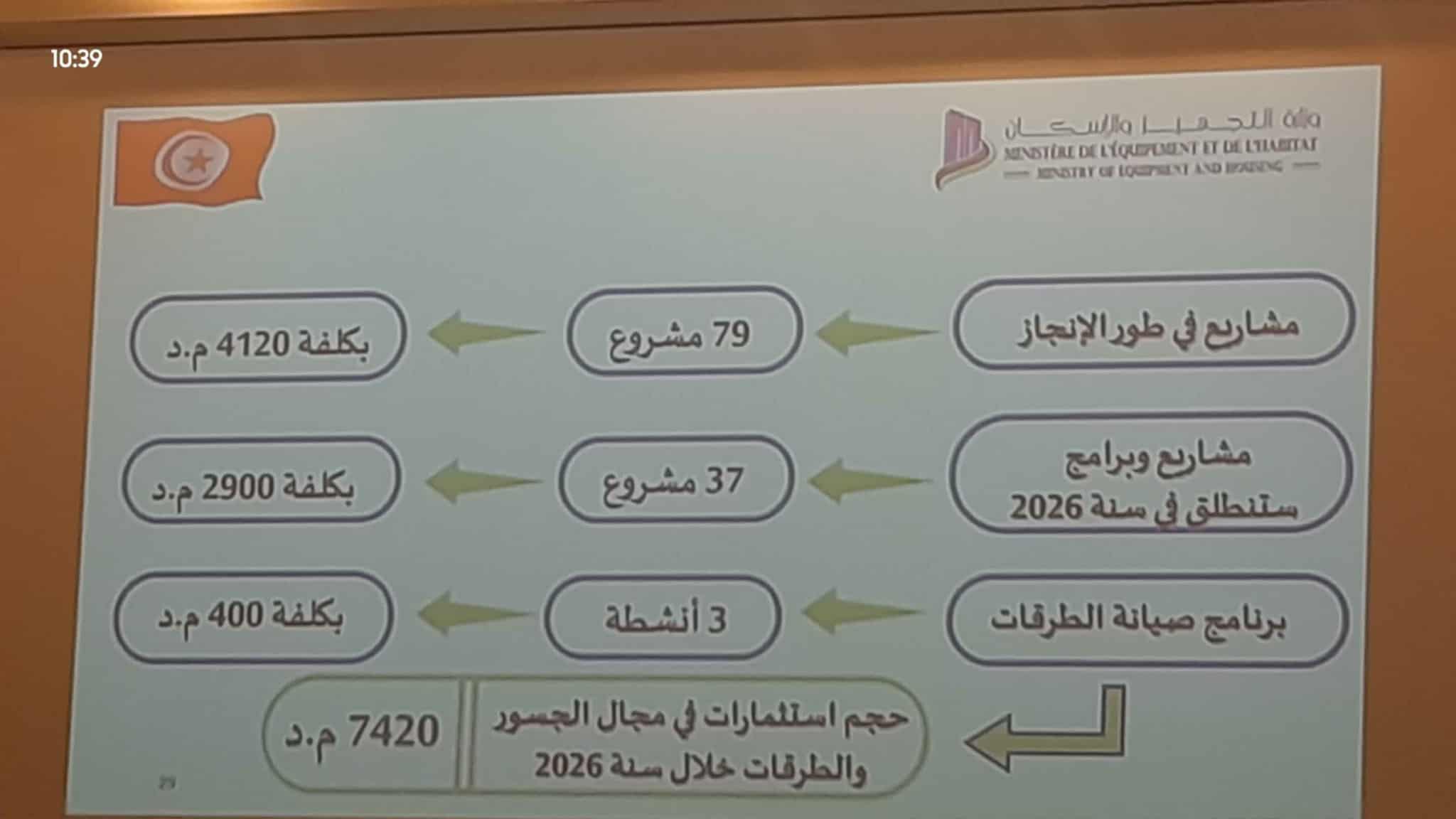 وسيتم خلال هذه الجلسة الاستماع لوزير التجهيز والإسكان صلاح الزواري حول أهم المشاريع المرسمة التي سينطلق انجازها سنة 2026، إضافة إلى المشاريع التي مازالت في طور الانجاز وبرنامج صيانة الطرقات.