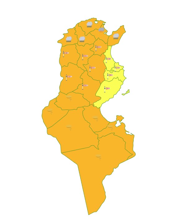 أسند المعهد الوطني للرصد الجوي اليوم السبت 31 جانفي 2026، اللون البرتقالي لـ20 ولاية في الجمهورية مما يدل على درجة إنذار كبيرة ويستوجب اليقظة التامة.